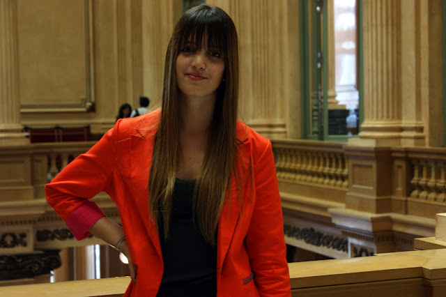 I wore my new orange blazer with a tank top and a skirt, giving the ilussion of a black dress.